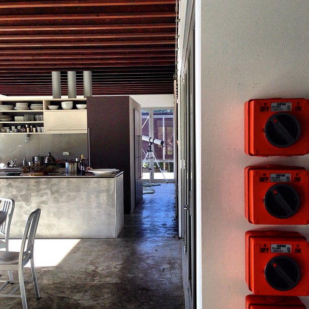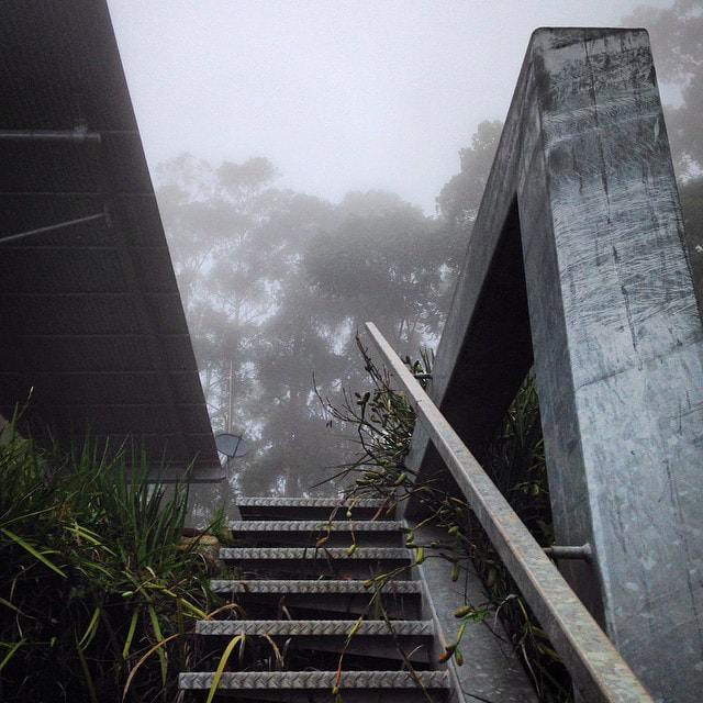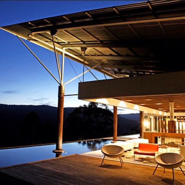 Alexander’s extensive use of concrete, steel, glass and wood plus his obsession with adapting commercial and industrial items for use in a domestic setting meant a result would never be “suburban” (Alex’s favored term). A weekender with a difference, simple light and robust on a 40 hectare, virtually inaccessible escarpment in kangaroo valley, with lush mountain drops. |
