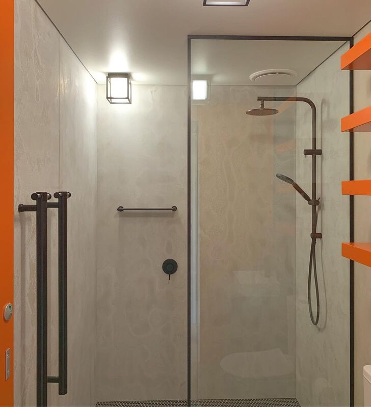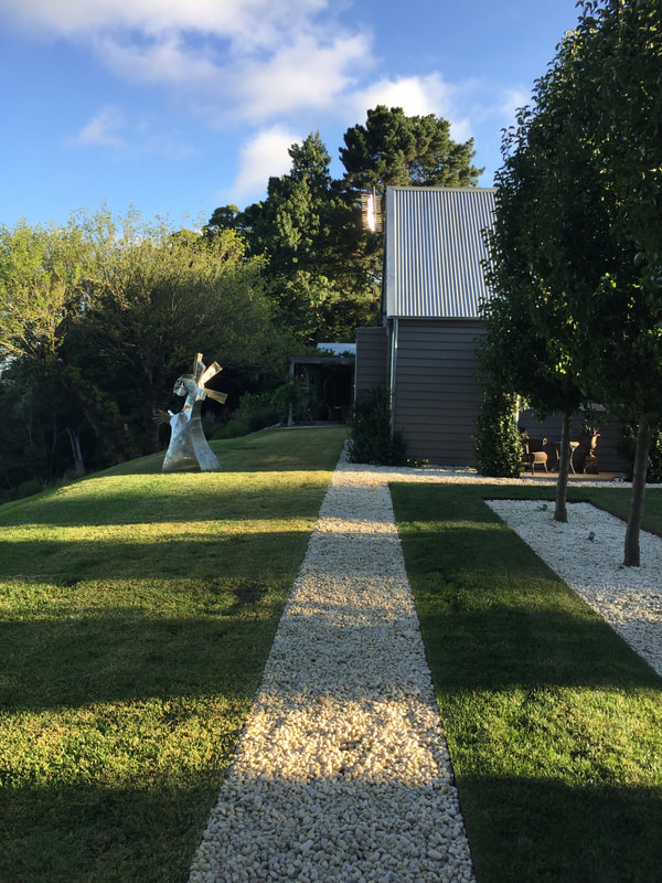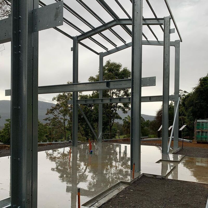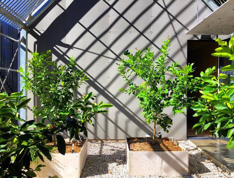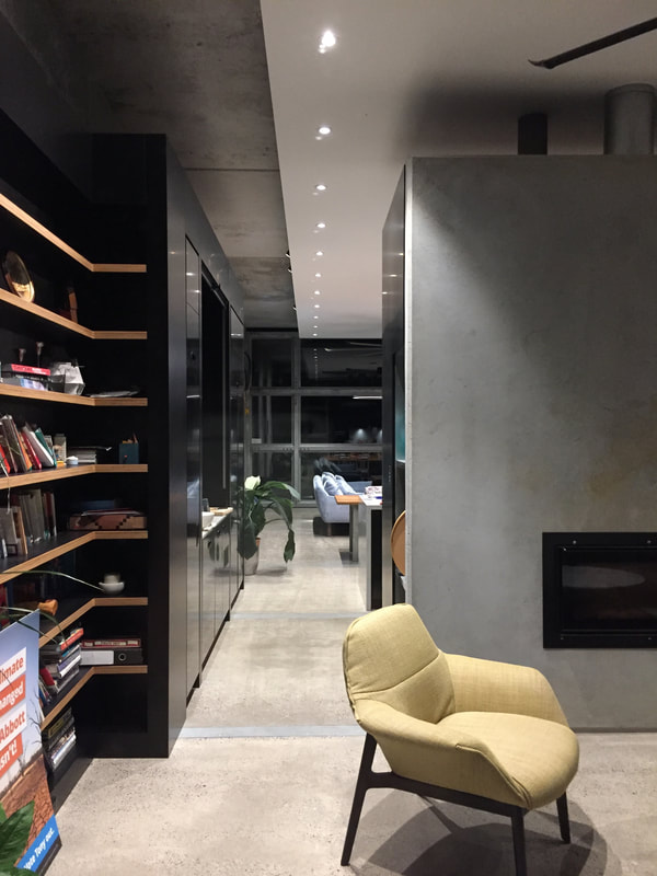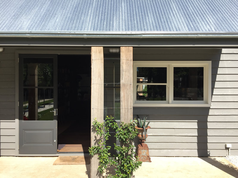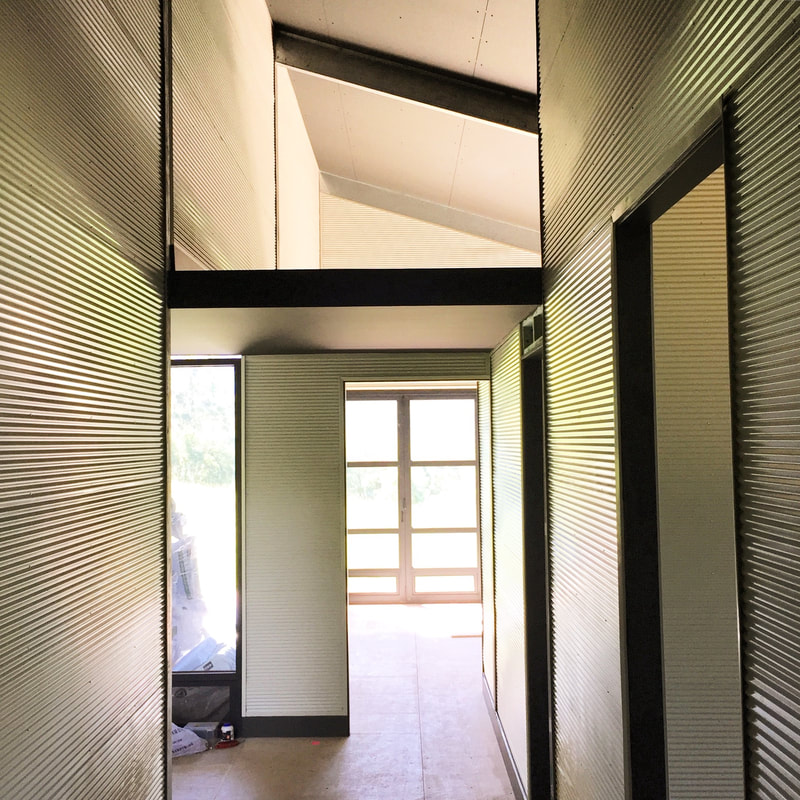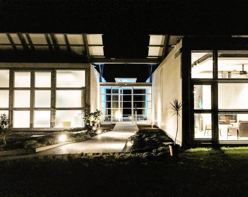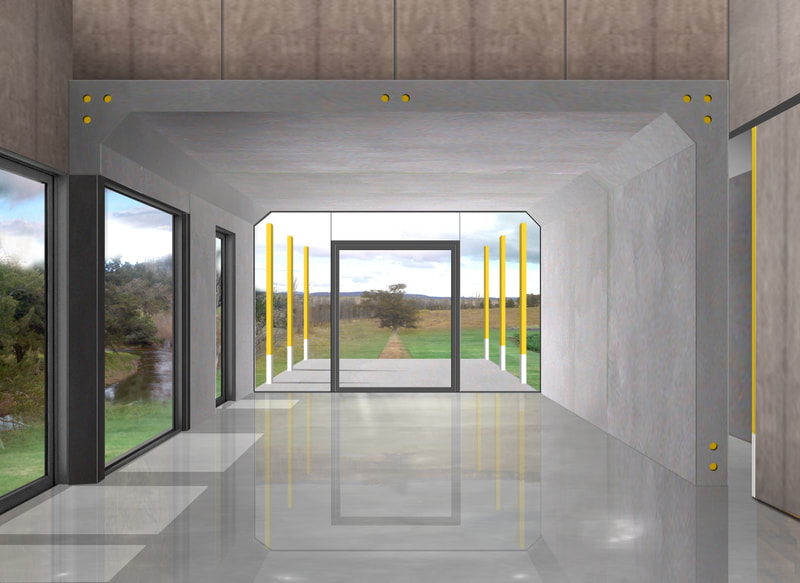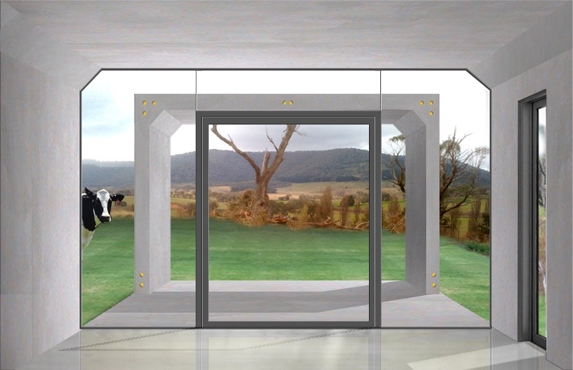 Despite being built from concrete which itself is high in embodied energy, the dwelling will stand the test of time. The passive solar aspects of this design will not be fully realized until the fiber cement shade awnings are installed along the north and west walls and large curtains hang over the exposed glass areas. Stainless steel cables are embedded on the external facade, for a future green wall. The existing dam supplies water to the newly planted orchard and gardens. Surprisingly little waste was generated during the build partly due to the prefabricated nature of this building. Having a small footprint the house is heated by hydronic underfloor heating. With 2 slow combustion heaters providing ambiance. The house runs from a 3.5kW stand alone solar system so hair dryers and toasters are a thing of the past. |