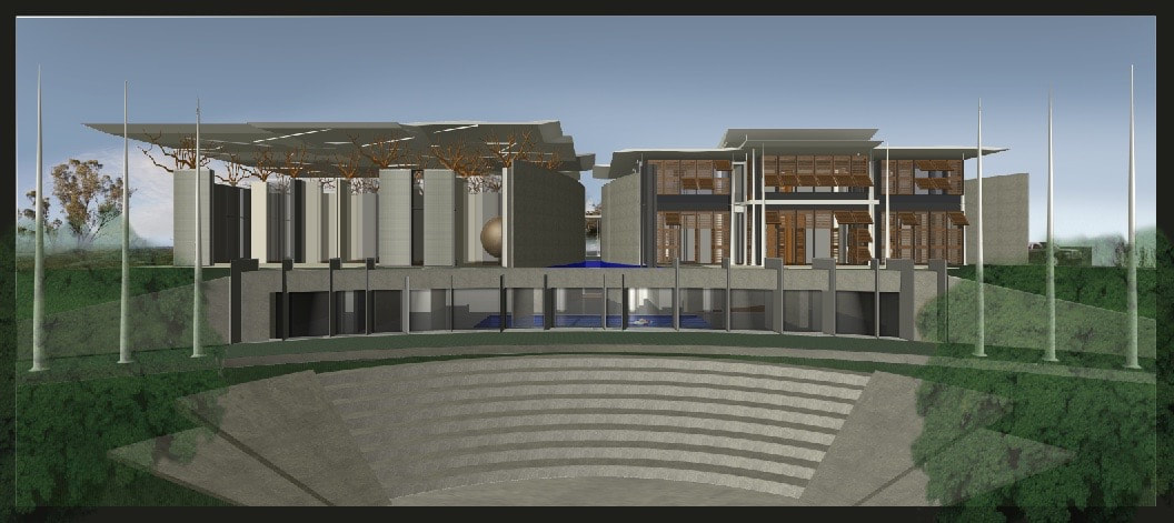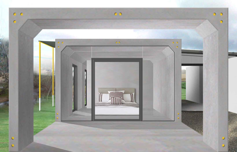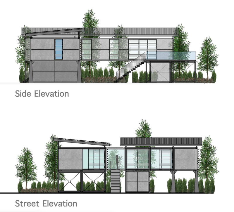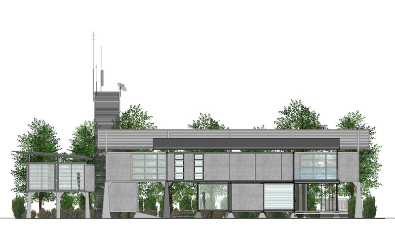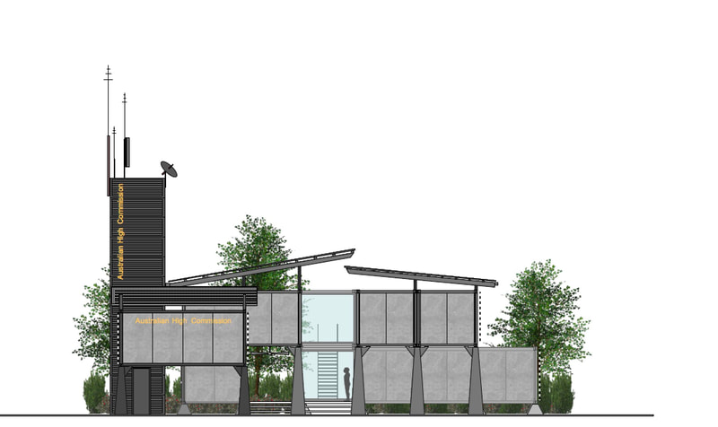It should be noted how this team, whilst addressing all the requirements of DFAT’s Pacific Island Strategy, has purposefully focused energies on two items of the total build. The Head of Mission (HOM) residence and the Three Australian Based Staff Residences. This approach has allowed time to properly address all the key objectives outlined in the Performance Specifications and to illustrate how these solutions can be adopted across all the AHC facilities cited in the Performance Specification. The predominant features of this design approach includes a standardized Plug & Play bespoke modular building system that allows for: # High flexibility in design configuration. # Adaptable interior space allocations across all building types. # Positive and negative space creation for Interior/Exterior spaces. # Ease of site installation. # High prefabrication content to minimize local labour and materials content. # Ease of replication across many and varying site conditions. # Extremely high durability during transportation, installation and improved Whole of Life maintenance costs. # Ease of disassembly and relocatability for reuse on or off the island. # Allows for minimal support structures in the under croft spaces allowing for recreational use in shaded space. # High three-dimensional building articulation allowing for optimal cross breeze ventilation through, above and below all structures. In summery, our reusable modular system not only provides the above benefits, but also maximizes sustainability through re usability of all building elements as well as minimizing the environmental impact on the site at End of Life or the Change of Use. The most notable feature of our design is the fly-roof. Designed to shade the structures whilst directing the heat away using natural high and low atmospheric pressures, this system has been tried and proven in many of our previous jobs. |