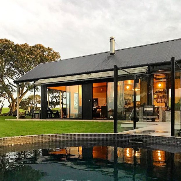 The Shed is nestled between Gerringong Golf Course and Seven Mile Beach, only 90 minutes from Sydney and 10 minutes to Berry and Kiama. The Shed celebrates an industrial aesthetic with soaring 5 metre ceilings, expansive use of glass, concrete floors and stunning views. A pool and fireplace make it the perfect Summer and Winter escape. |